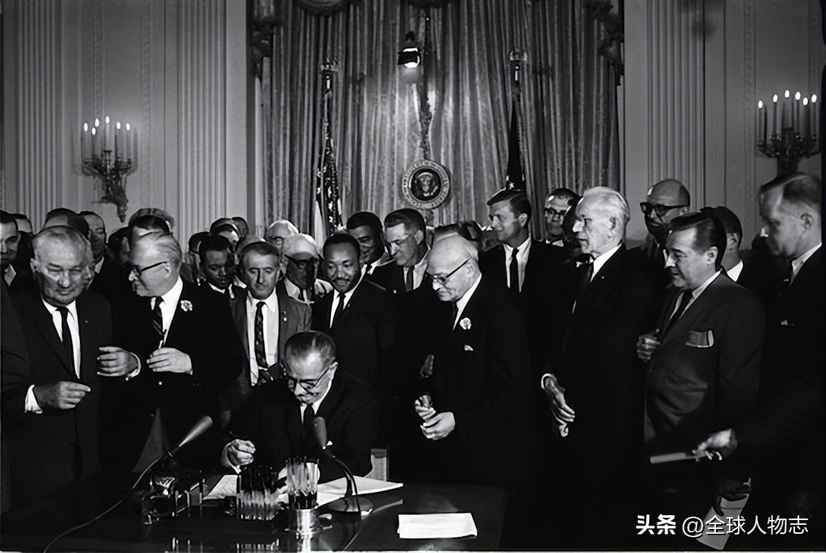 约翰逊签署成为法律的三项重要民权立法如下: 1964 年民权法案,不允许在就业或使用公共设施方面存在歧视;1965 年的投票权法案。
