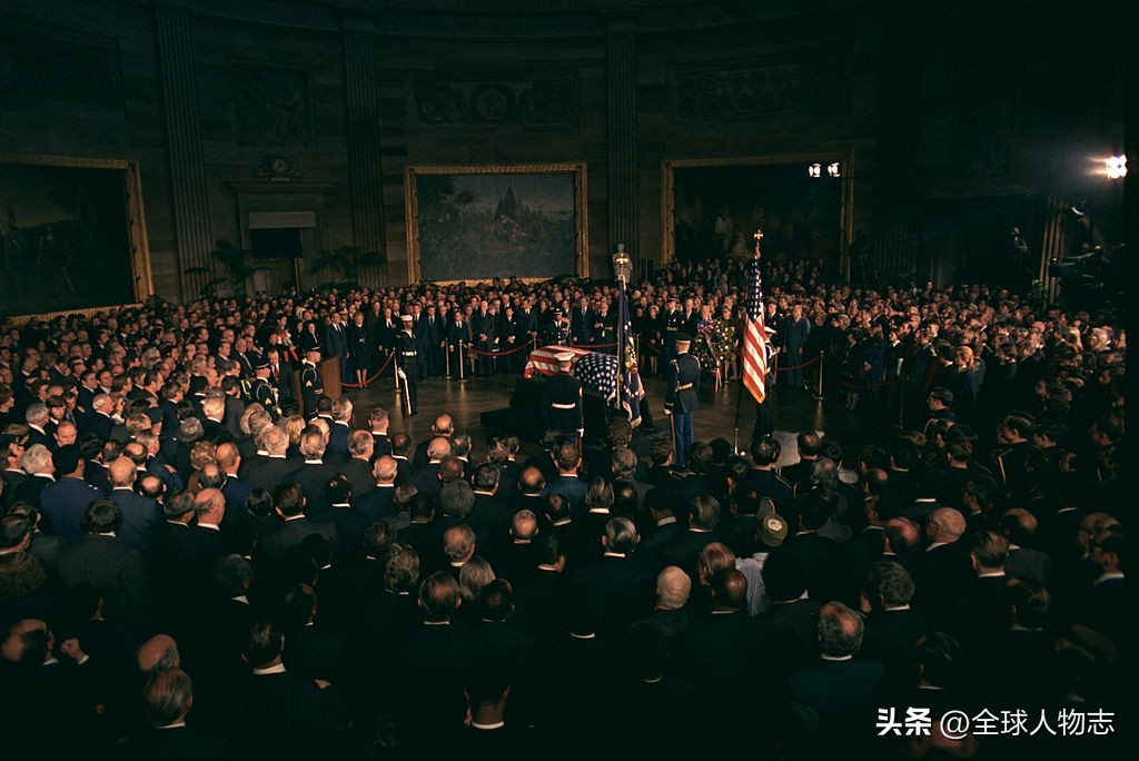 林登约翰逊和他的妻子伯德夫人坐在肯尼迪家族后面的一辆汽车里。在总统被宣布死亡后,林登和肯尼迪总统的遗体以及夫人杰奎琳登上了总统专机空军一号。