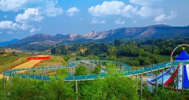 青州杏花村旅游度假区拥有全长1580米,海拔落差高达200米,1680°高空旋转的高空玻璃漂流。也有马鞭草、向日葵花海,徜徉其中,别有韵味,每一个转角都藏匿着惊喜。