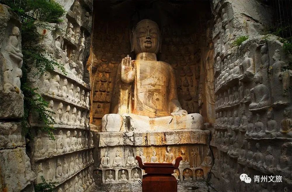 驼山是全国重点文物保护单位,国家地质公园,自古以来就是名震青齐的游览胜地,号称“驼岭千寻”。驼山佛教石窟造像群,是中国东部保存最大最完整的石窟造像群,被誉为“石窟之冠”。