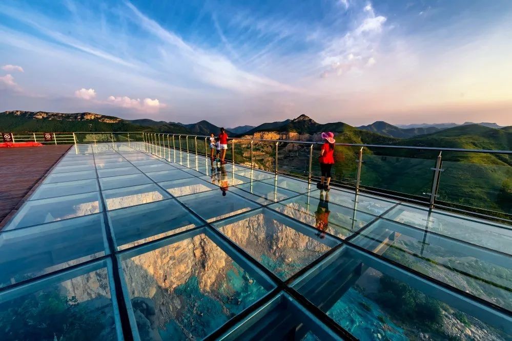 青州王府荷花窑洞度假区绿水青山环绕,四时风景不同。这里拥有总长约4500米的登山步道,1000平方米玻璃观景栈台,站在身处悬崖边的玻璃台上,仿佛凌空而行,目眺远方心旷神怡。是远离都市尘嚣,在山水之间打造一处天然静谧的休闲场所。