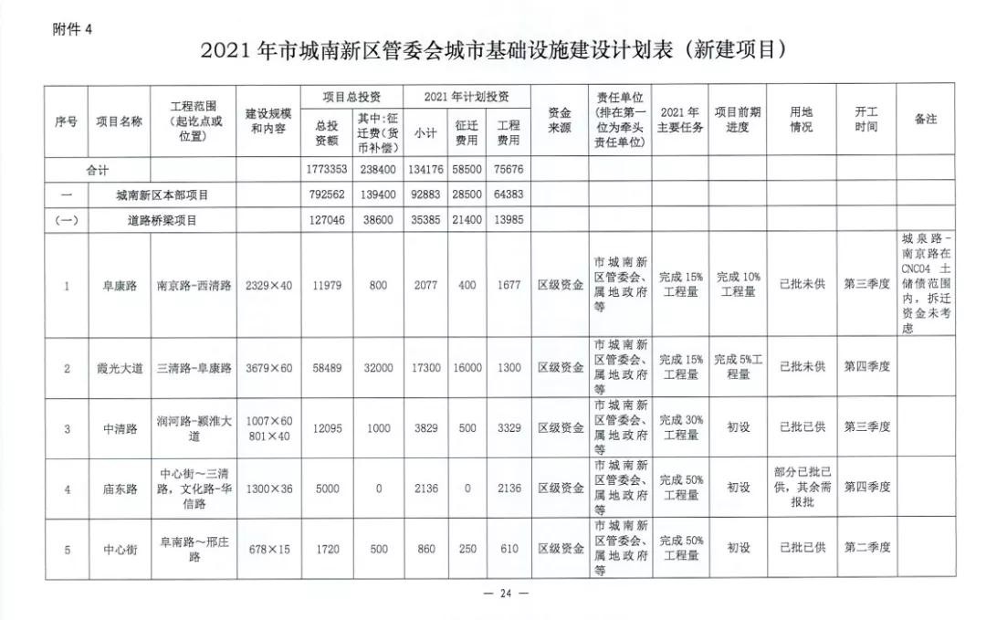 估算投资:估算总投资9224万元,建设资金由市城南新区管委会根据项目建设进度,统筹年度一般公共预算、政府性基金预算安排解决。