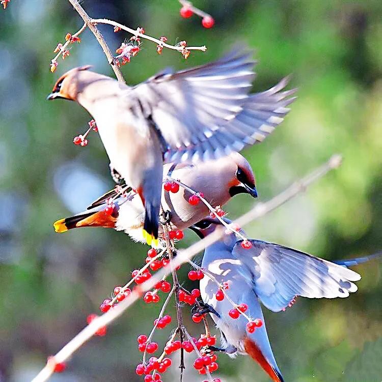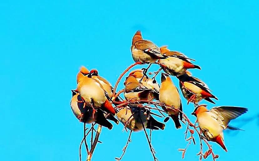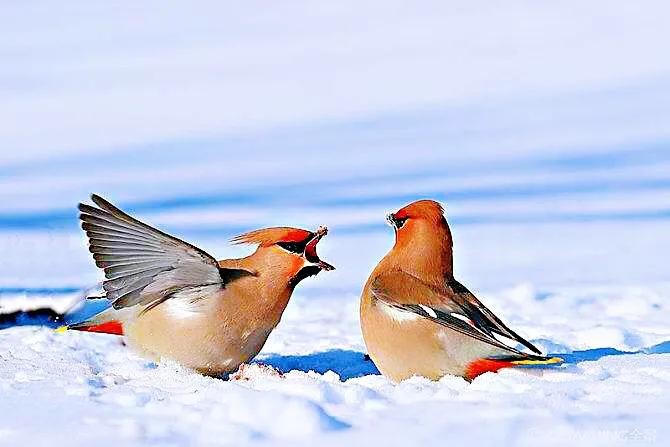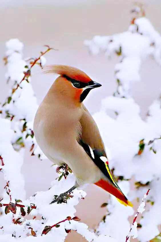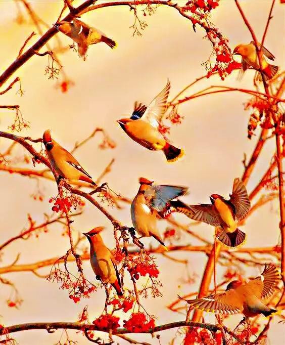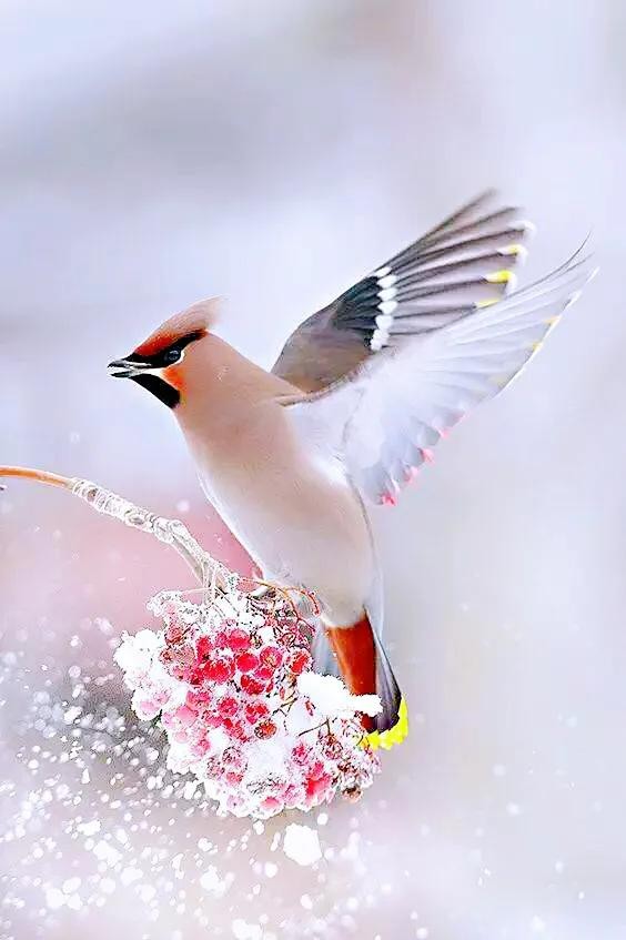 太平鸟~体态优美,鸣声轻柔。属于我国冬季候鸟和旅鸟。