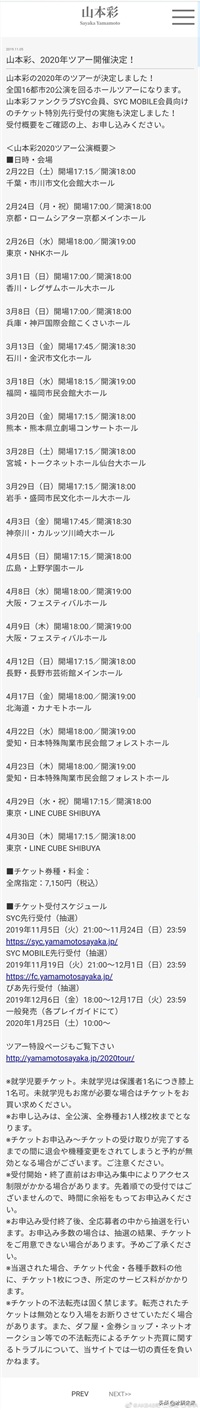 2020年巡演日程已经公布了,从2月到4月总计20场巡演。