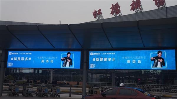 蓝底白字的酷狗品牌色,除了歌手名字以及2018酷狗年度音乐榜的有关信息,再无其他杂糅信息,如此简洁明亮的设计,让不少公交站牌成了歌迷的打卡点。更让人感到惊讶的是,这波“网红”广告不仅飞向了各大公交站,还“空降”到了北上广的机场,甚是炫目!