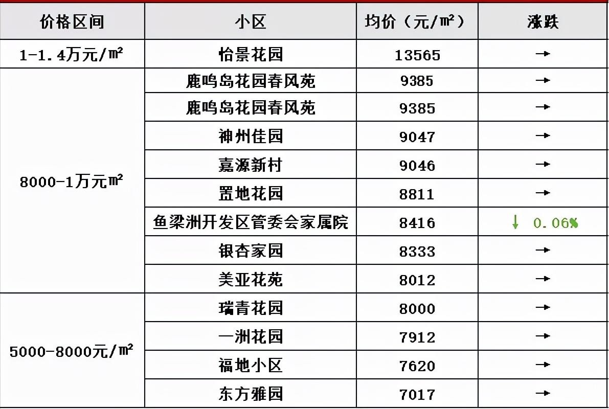 鱼梁洲的房均价多在8000到1万之间,除了怡景花园,大部分小区都位于此价格阶梯。