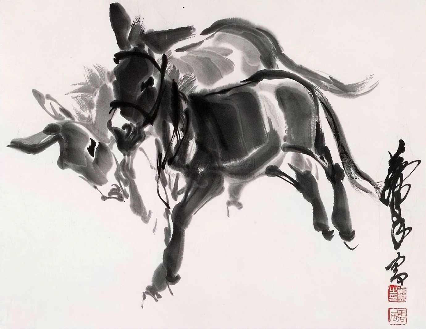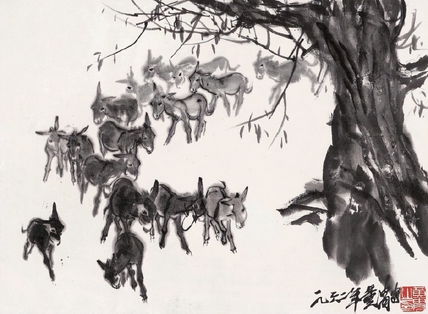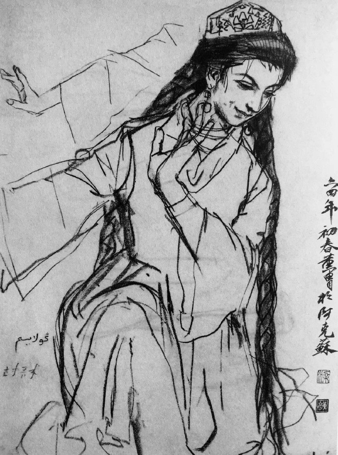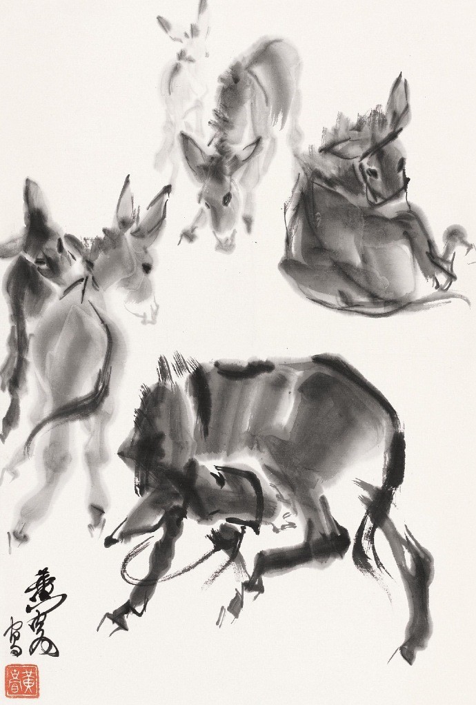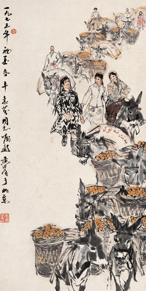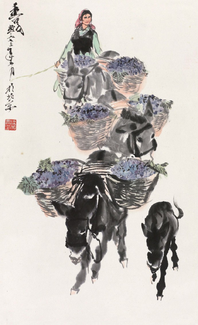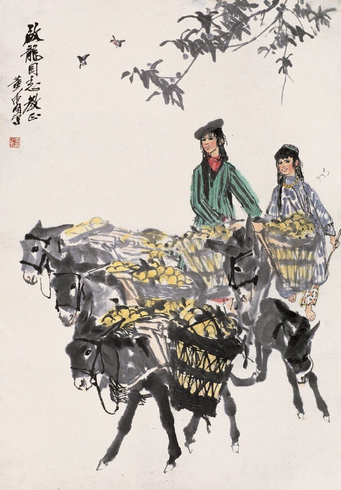 把速写的笔法融入水墨画是黄胄的一个创造,大量的速写实践,练就了他敏锐的双眼和迅捷的手法,亦使其作品充溢着生活气息。