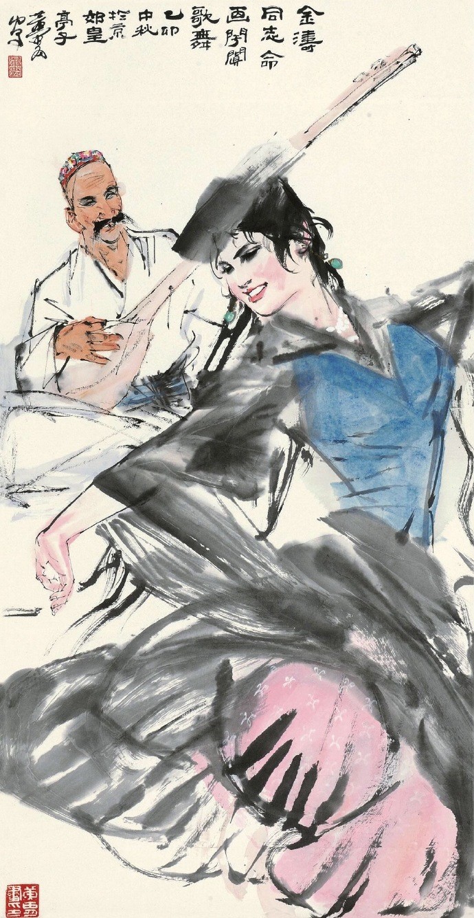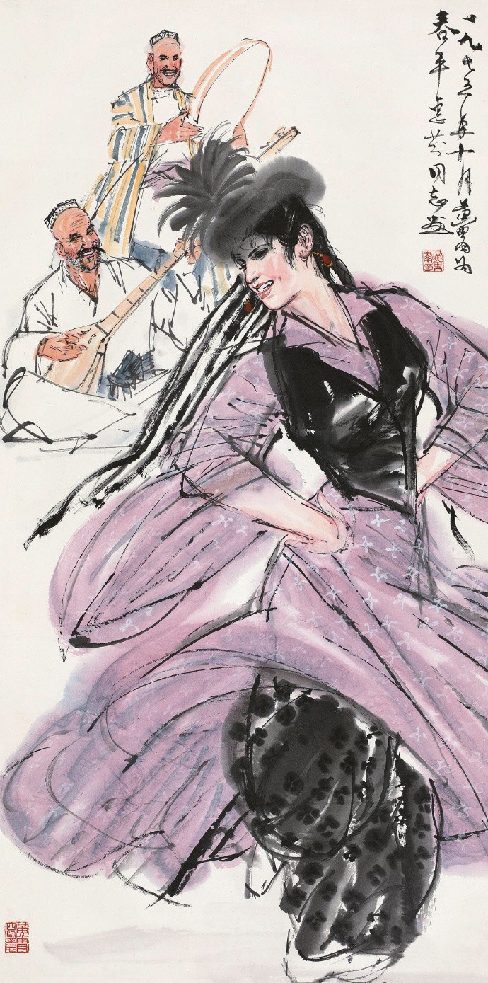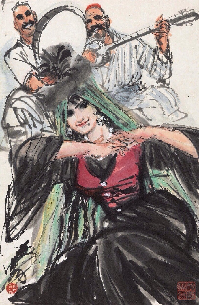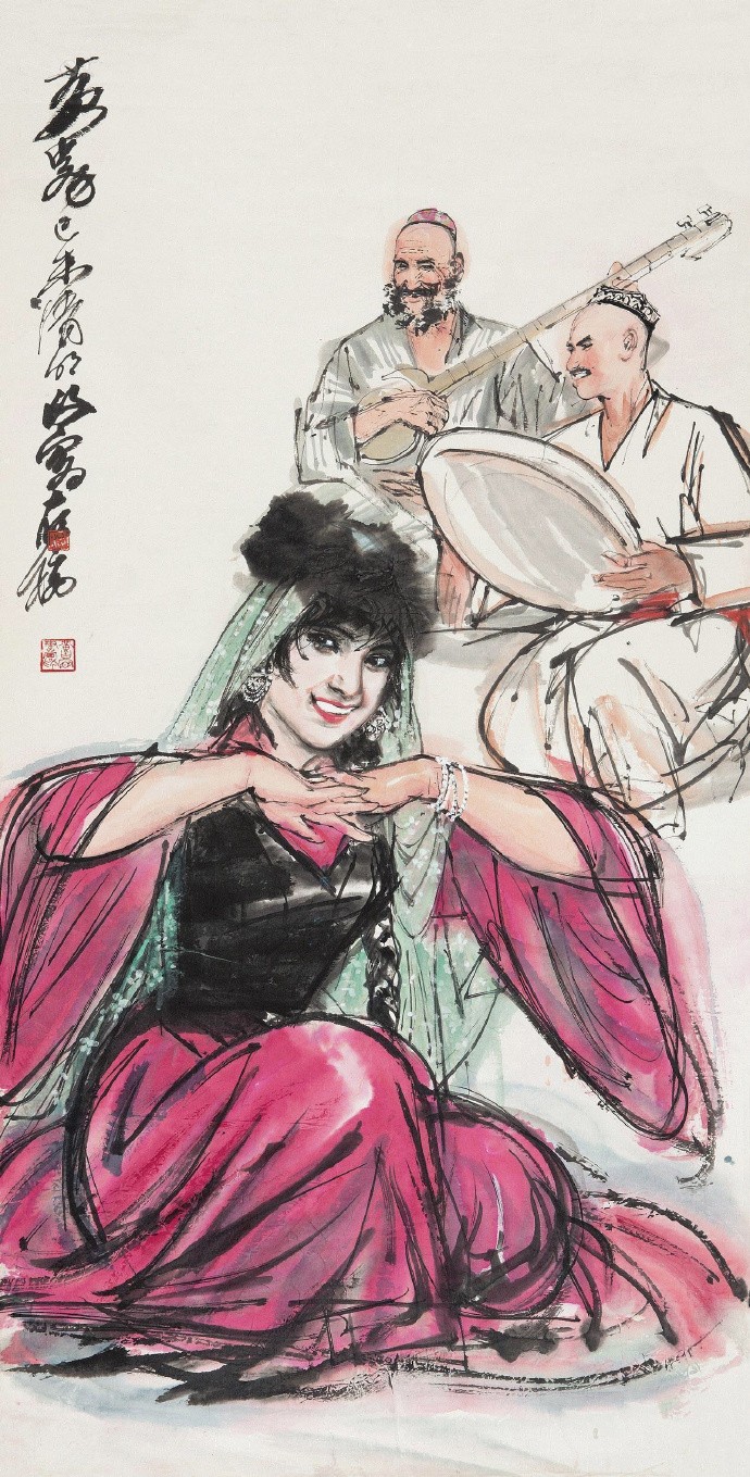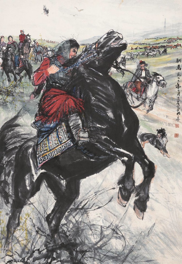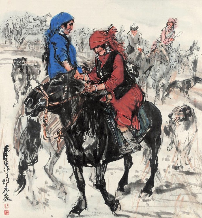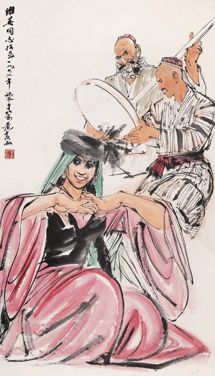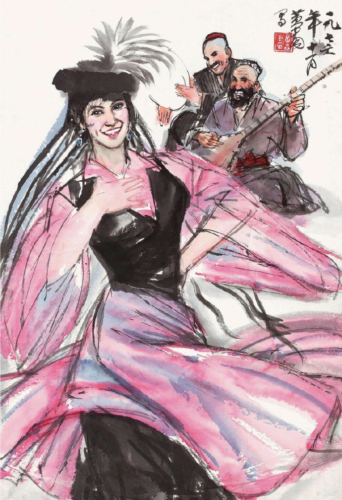 他以泼辣奔放之笔墨和特有的速写式画风,创造了人物画、动物画新的样式。1953走访新疆、青海、拉萨,受西北地区粗犷的民风和少数民族生活吸引,此后就以边疆少数民族生活为主要题材,少数民族豪爽、泼辣、热情的品质也反过来塑造了他的艺术个性。