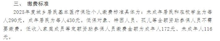 2025年新型农村合作医疗保险(新农合)的缴费标准来了!