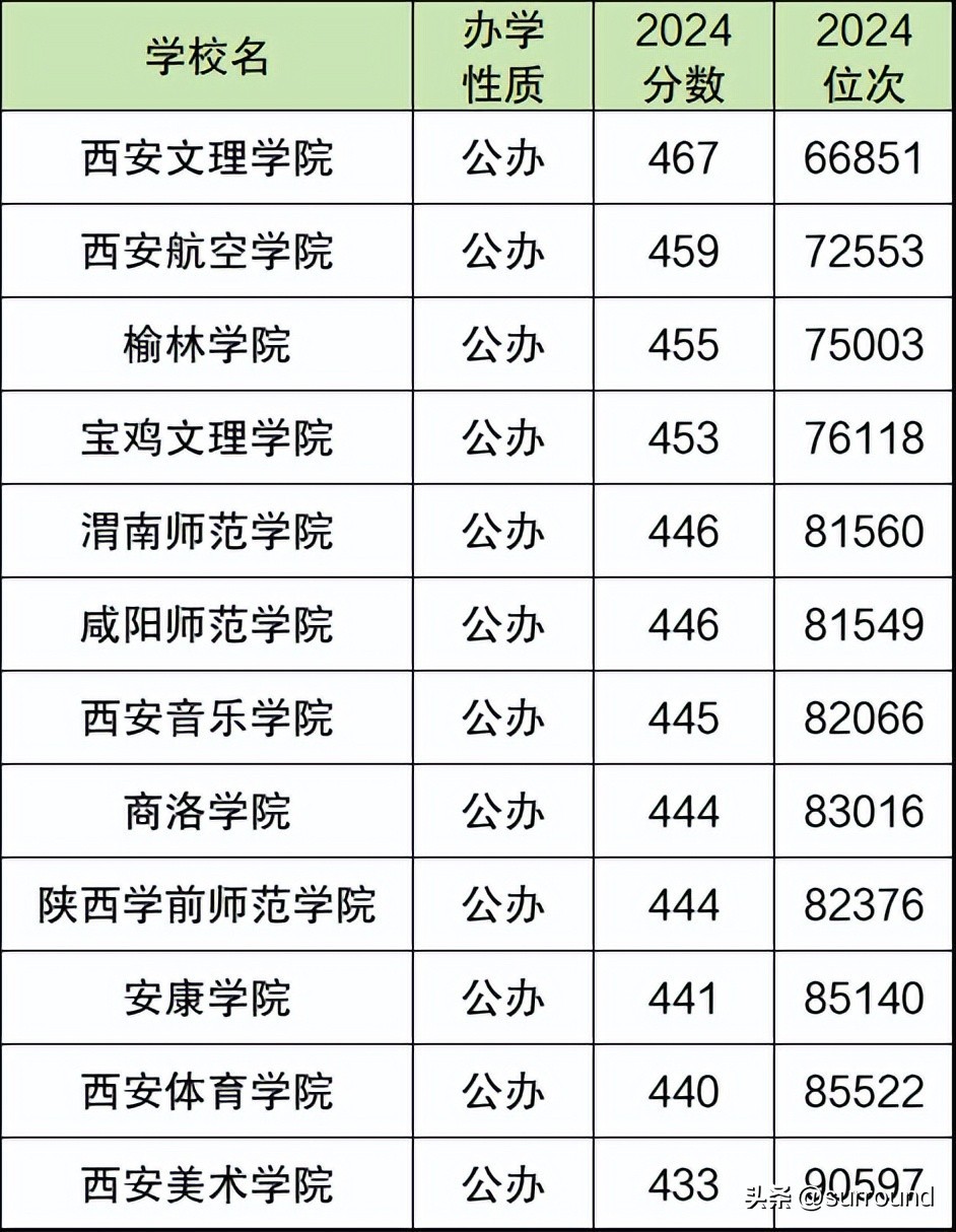 2024年陕西公办二本大学在理科的录取分数线位于433分~467分之间(不含中外合作、艺术类等普通考生无法报考的特殊专业)。