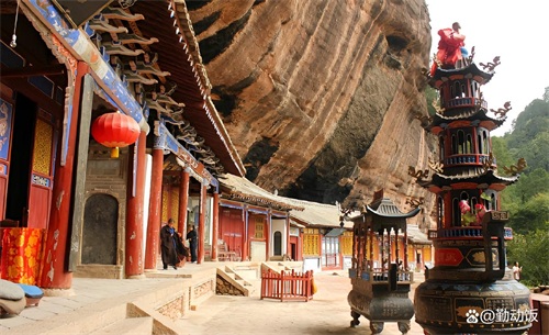仙人崖,位于天水市东南65公里处的麦积山风景名胜区,麦积山石窟的东北方向,为国家5A级景区。仙人崖景区,始于南北朝,有近一千六百年历史。宋代称“华严寺”,明代永乐皇帝赐名“灵应寺”。相传此处过去常有高人隐居于此修行,故名仙人崖。仙人崖景区由三崖、五峰、六大寺组成,寺观修建于峰顶或飞崖之下,知名景点有“仙人送灯”、“净土松涛”、“仙水湖光”等。