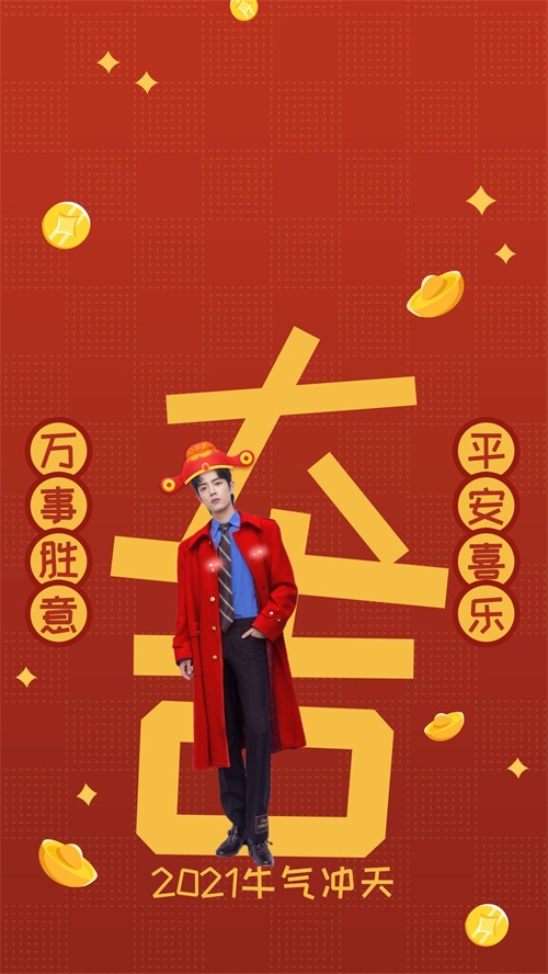 第二张壁纸素材也自去年跨年晚会,依然是平安喜乐主题,比起第一张的唯美而言,第二张就更有节日气氛。带着财神帽的肖战终于活成了他手机屏保财神爷的样子,希望大家在新的一年里都能牛气冲天,告别所有不开心。