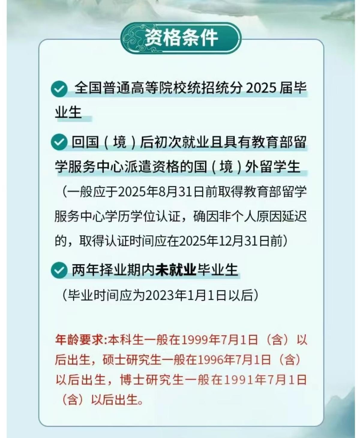 从国能集团发布的2025高校毕业生统招公告具体来看,公告对学历要求相对宽泛,要求是全国普通高等院校统招统分2025届毕业生、两年择业期内未就业毕业生。留学生则要求是回国(境)后初次就业且具有教育部留学服务中心派遣资格的国(境)外留学生。