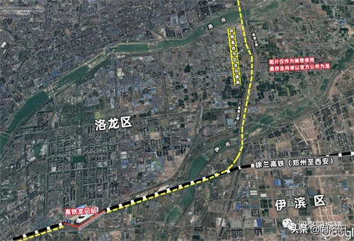 根据小编猜想,呼南高铁市区段大概率是沿着二广高速公路敷设,在跨越伊河后向西转弯与徐兰高铁线路并排,而后进入洛阳龙门高铁站。