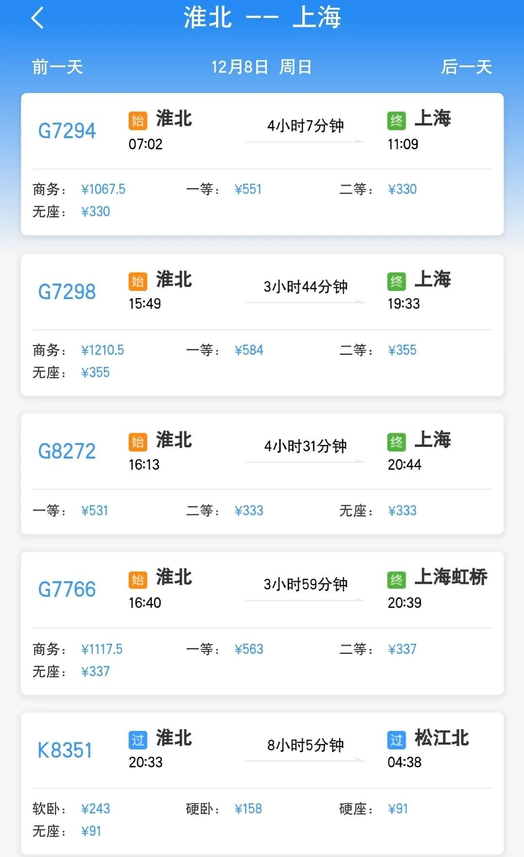 淮北到上海为什么只有4趟高铁和一趟绿皮火车