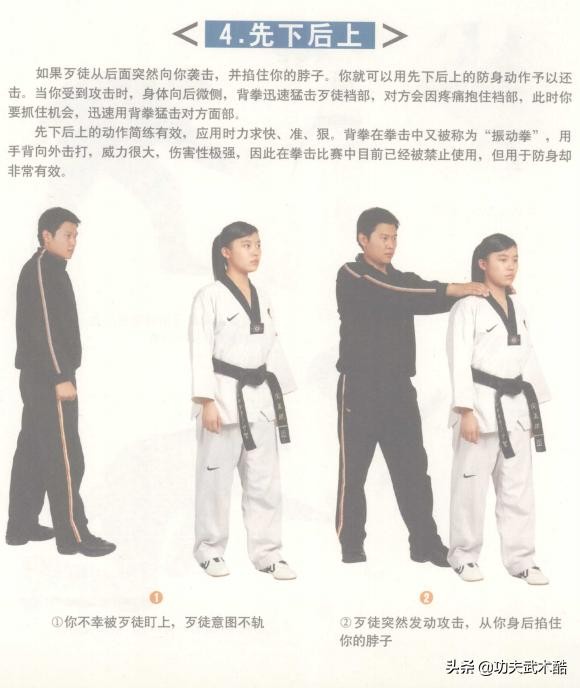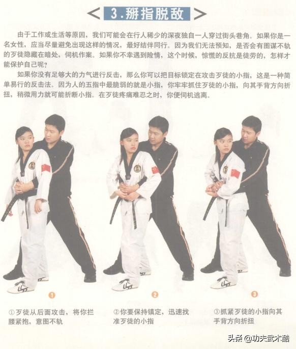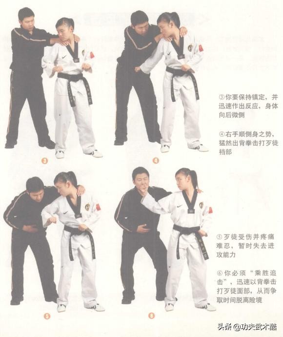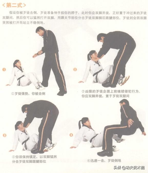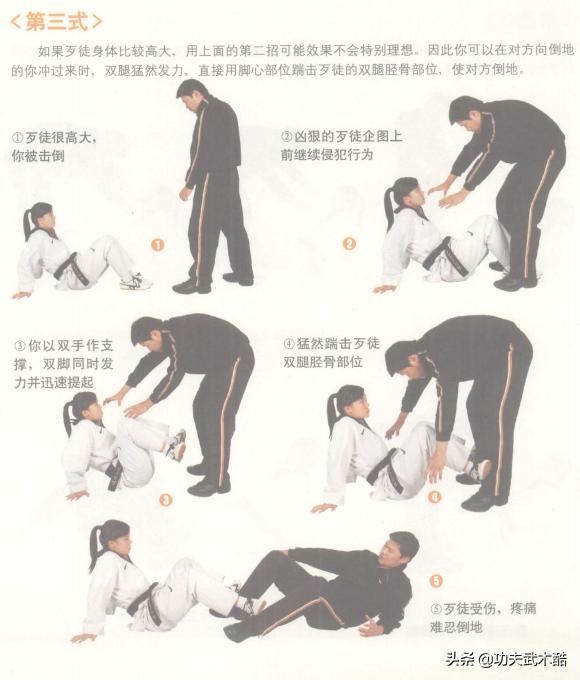 本篇是跆拳道防身自卫术:人体最强的攻击部位与最脆弱的要害部位、跆拳道防身自卫术:进攻、防守、反击技术动作,非比赛型招式的续篇。