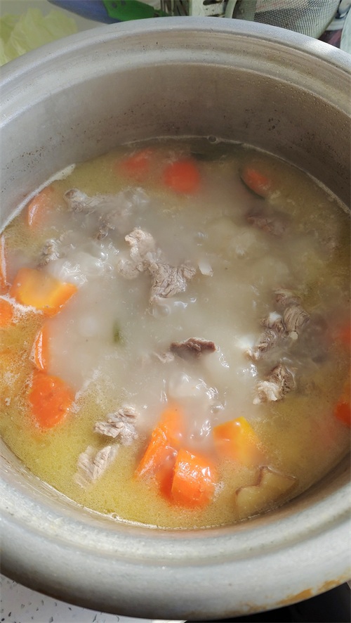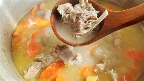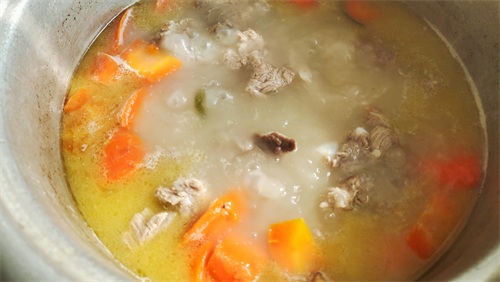 第四步:准备砂锅或者炖锅,在锅中烧足够的开水,将炒好的排骨倒入开水中,加入几片姜片和葱段,再将切块的胡萝卜块加入其中,盖上锅盖以中小火炖煮1个小时,最后出锅之前加入食盐调味,再烧5分钟既可以出锅喝汤吃肉了,这样炖出来的排骨汤肉嫩汤白,没有腥味,绝对的美味可口。