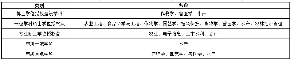 在学科建设方面,天津农学院有9个一级学科学术硕士学位授权点、4个硕士专业学位授权点。有1个天津市一流学科、4个天津市级重点学科、5个天津市级特色学科群、2个天津市高校服务产业特色学科群。