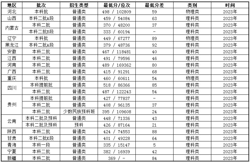 通过对天津农学院2023年高考录取情况的了解,我们发现主要录取的批次为“二本”批次。除此之外,在个别省份例如四川、贵州还有提前批招生情况;在录取的类别方面除了湖南、湖北、黑龙江、江西、青海、宁夏6个地区只招收理科生之外,其余大部分省份均是文理兼招。在录取的分数方面,理科类当中河北、江西、四川3个地区的录取分数相对较高,录取最低分达到500分左右;文科类当中河北、河南、四川3个地区的录取分数相对较高,录取最低分达到510分左右。