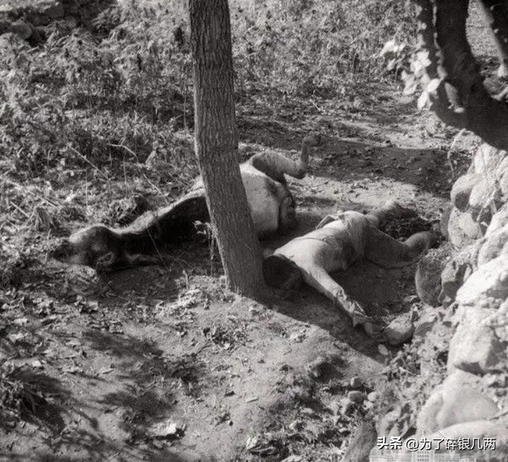 一个村民在路上遇到了日军,结果被日军给杀害,甚至连他的驴子也没有躲过一劫,被日军用枪打死。