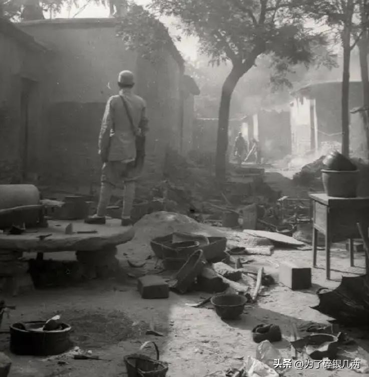 这是日军扫荡过后的场景,家里的锅碗瓢盆被日军扔了一地,家里值钱的东西,粮食等全部被日军搜刮一空。