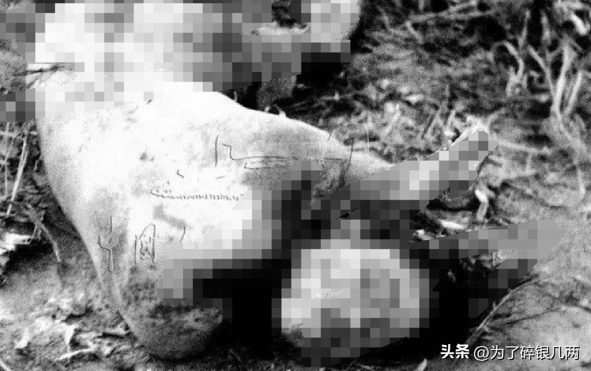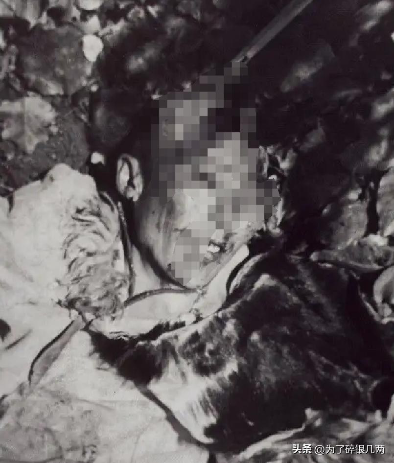 一个男子遭到日军屠杀,日军用枪从后面抵着他的脑袋,然后再开枪,男子的脑袋都被子弹打烂,眼睛都还睁着不愿意闭上。