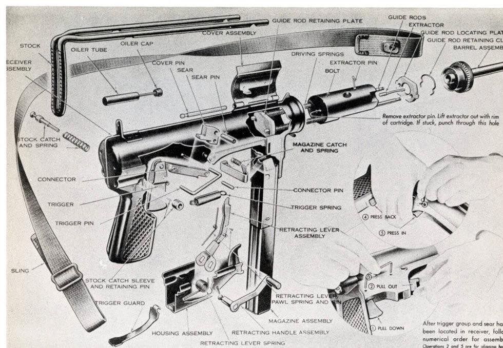1941年12月7日,在旧日本偷袭珍珠港后拉开了太平洋战争的序幕,期初美军是把能用的都派上了战场,在瓜达卡纳尔岛战役时美国海军陆战一师主要装备还是爷爷辈的春田1903步枪,M1917水冷式重机枪以及少量的M1928汤姆逊冲锋枪,日本的自杀式冲锋往往让美军难以抵挡,而作为近战利器的汤姆逊冲锋枪因为高昂的价格和复杂的加工无法大量装备部队,为此美军高层除去不断简化汤姆逊冲锋枪外,另要求生产一款价格便宜、可以量产的冲锋枪。