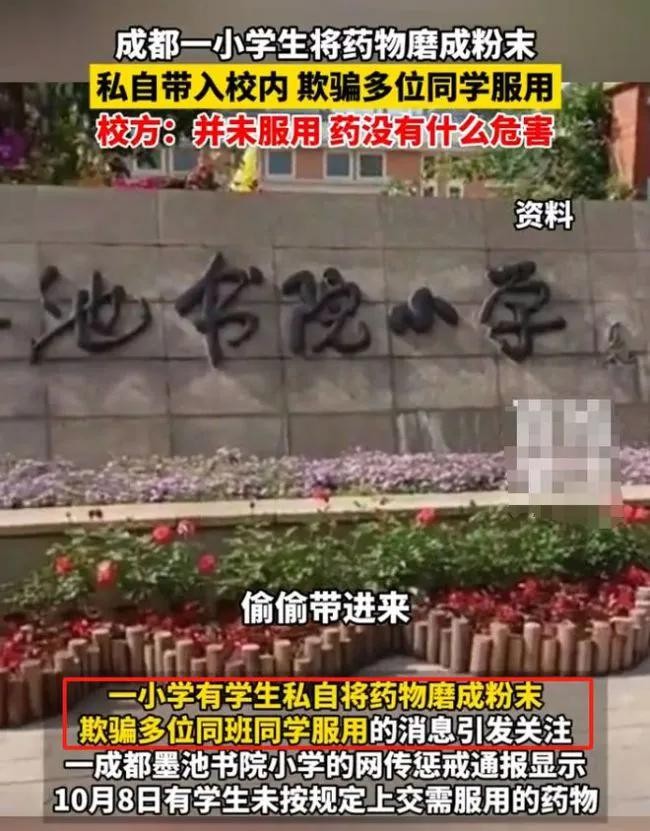 太可怕:成都小学生携带不明药物试图欺骗同学服用,言语威胁就范