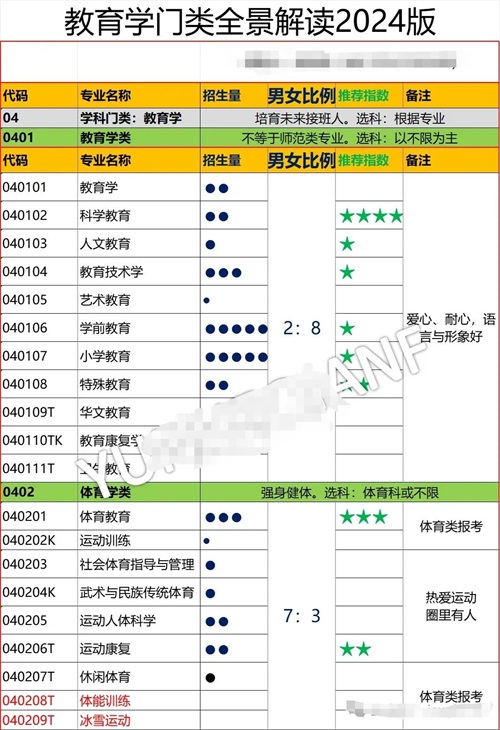 尽管人口出生率降低,但教育学门类只要有人,就有未来。但谨慎选择学前教育与小教。 学科师范类分布于各个门类,文科师范主要有:特教、语文、英语、历史、地理、政治。