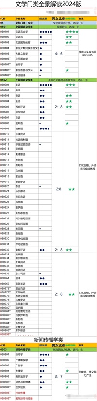 一.文科报考专业总览