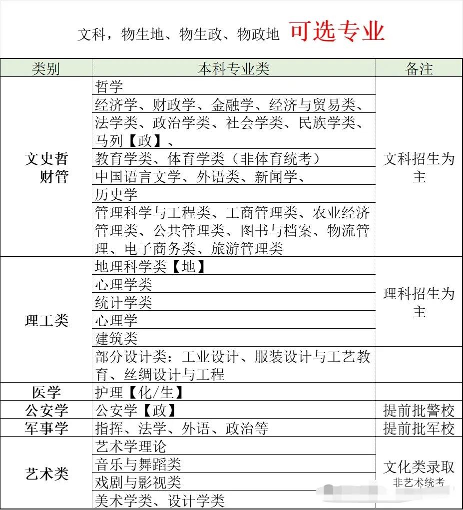 文科生,可以报考之本科专业一览表