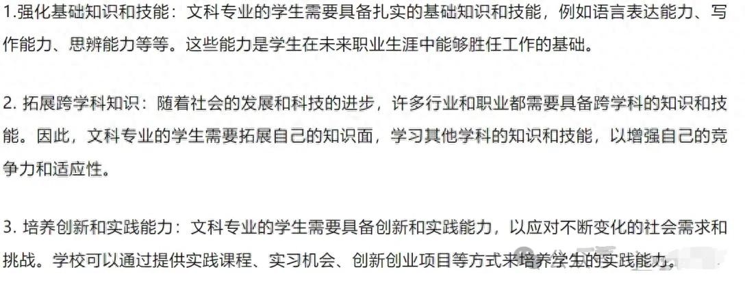 文科专业涵盖了广泛的学科领域,如人文学科、社会科学、艺术等,这些学科对于培养批判性思维、创造力、沟通能力等方面具有重要作用。