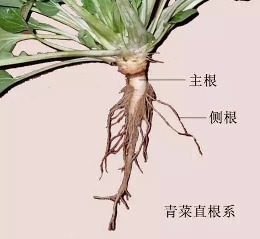 直根一般是由主根和侧根共同构成的,从外观上看,主根发育的很好,长得较为粗壮,周围有一些比较细小的侧根,如青菜的根。
