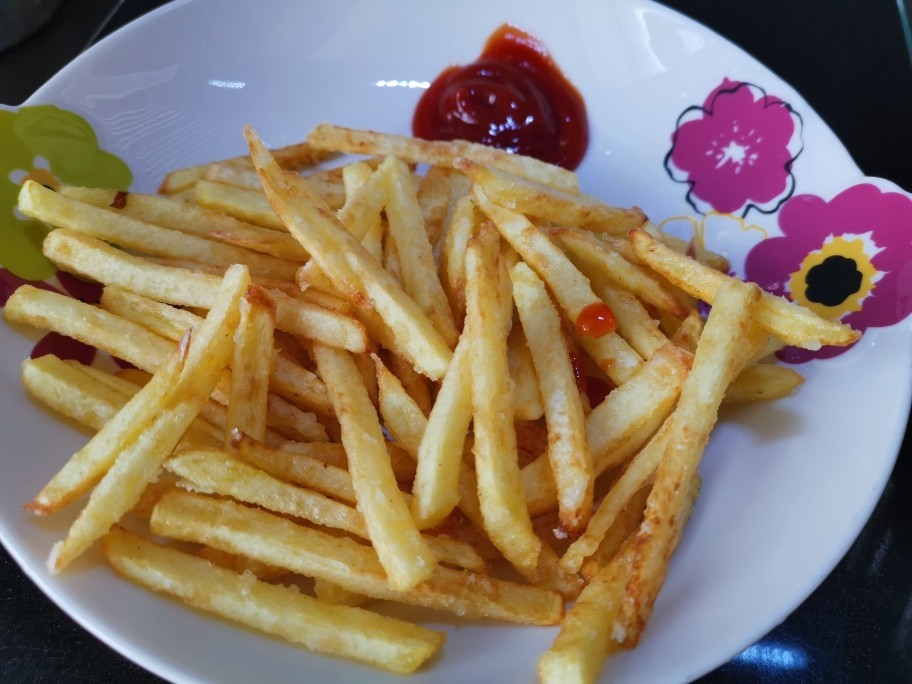 人们在享用快餐的时候,总担忧油炸食品的热量,做一款简单易上手的小零食来说,偶尔吃上一次也无妨,蘸点番茄酱一同食用,还能起到解腻的效果。