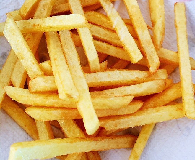 炸薯条是很简单的,首先我们在选择土豆食材的时候,一定要选择黄心的土豆,因为这样的土豆炸出来才能是金黄的,制作薯条的过程简单,可以总结为三个字,“煮—冻—炸”,缺一不可,快餐店的薯条,每一个步骤都有标准化的要求,咱们自己在家做,虽然没那么讲究,但步骤也一定要搞对,注意小细节可以让炸薯条变的更好吃。