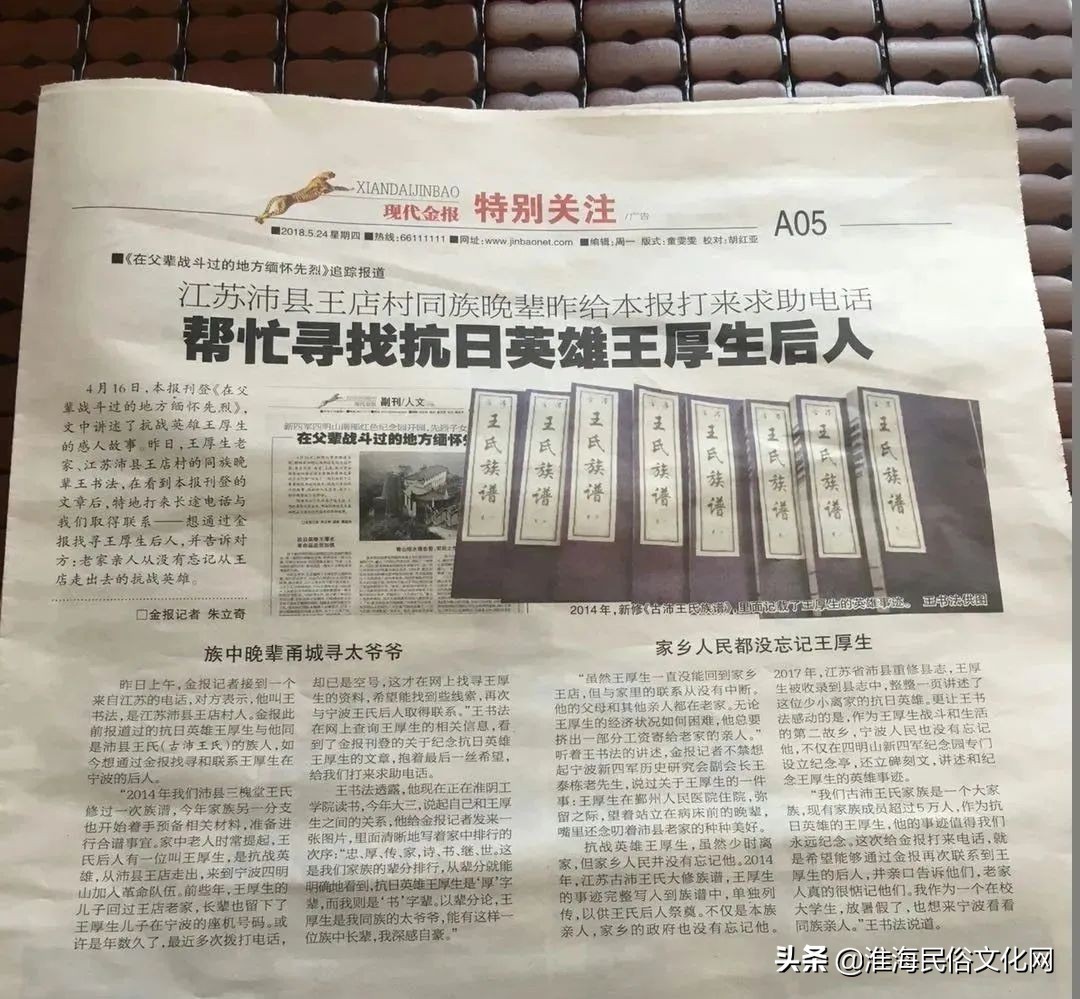 二零一九年王厚生事迹收入《沛县革命人物编年事辑》中。