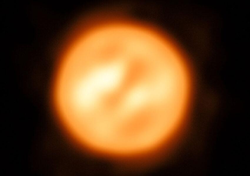 利用欧南台甚大望远镜的干涉仪,天文学家对红超巨星心宿二的表面构建了一张令人惊叹的图像。