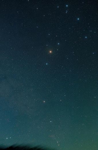 心宿二(Antares),又名大火,是一颗红超巨星。在北半球的夜空中,低悬于南方地平线上方。
