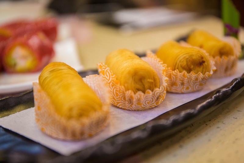 炸春卷在粤式点心中属于少数派,因为它是炸制而非蒸制煮制的,因此也就具备了其他点心所没有的酥脆口感。