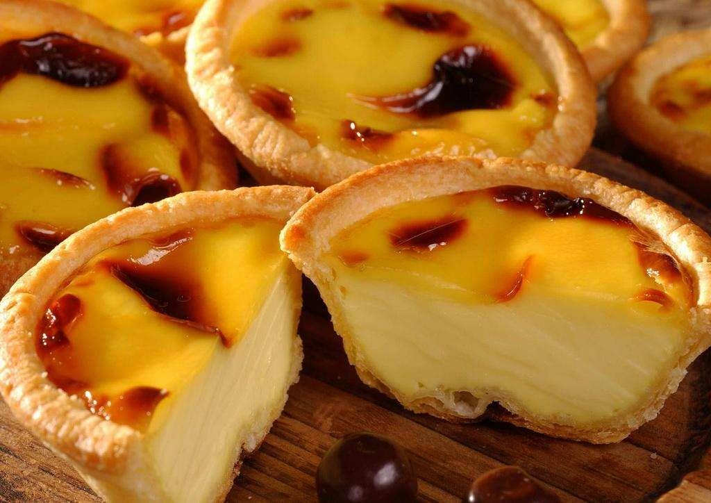 嫩滑的蛋羹盛在挞皮中,烤制一定不能过头,挞皮也一定要薄厚适中,否则蛋羹很容易烤焦或烤老。