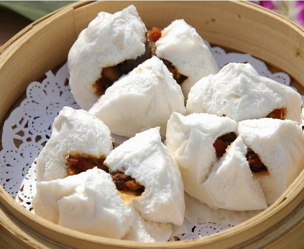 广东的叉烧包中诱人的红褐色叉烧肉馅会有一部分会露在外面,但这并不是刻意而为,而是因为独特的面团发酵方式,让叉烧包在蒸制时可以尽情释放叉烧扑鼻的香味,自然裂开。