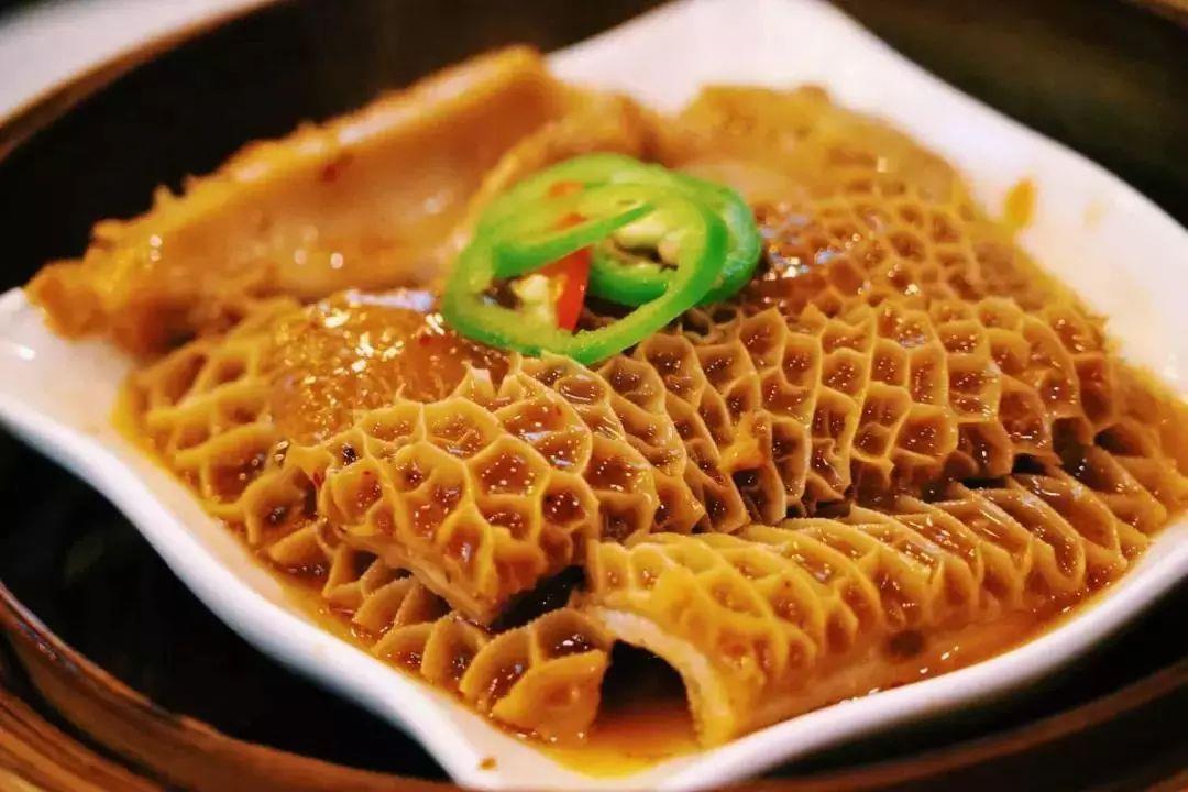 洗净的牛肚经过了煮,炒,炖,蒸等重重历练,把丰富浓郁的调料味道牢牢吸附在了每一个“金钱”状的褶皱里。入口绵软,却不会散烂,保持着一份爽脆的韧性。