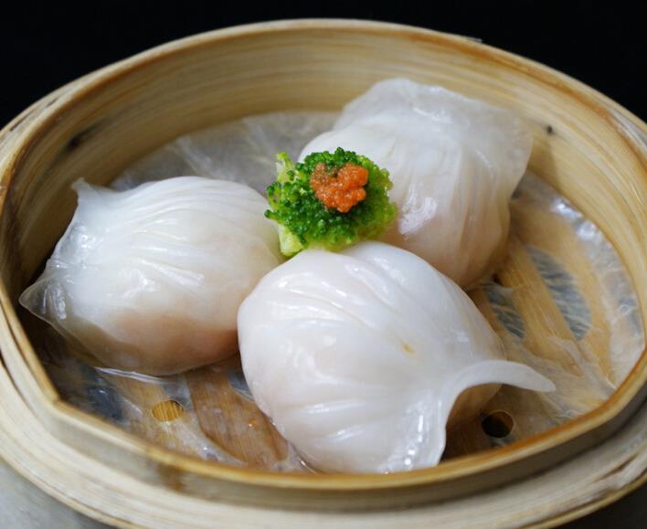 作为广东点心界的扛把子,虾饺一上桌就自带“光环”:晶莹剔透的皮由澄粉制成,光滑洁白中隐约透露出淡粉色的馅料。