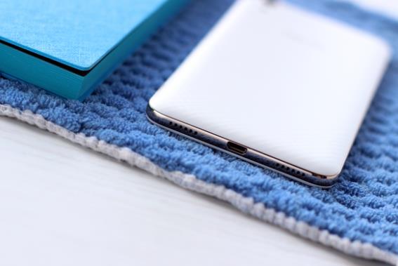 中框的设计倒是让人眼前一亮,经过了金属漆的润色,看上去相当有质感。另外在实体按键包括了音量键和电源键,都集中在了右侧。这边与单手握持和操作。而且按键还做了拉丝处理,触感很强烈,笔者使用时感觉回弹力度适中。