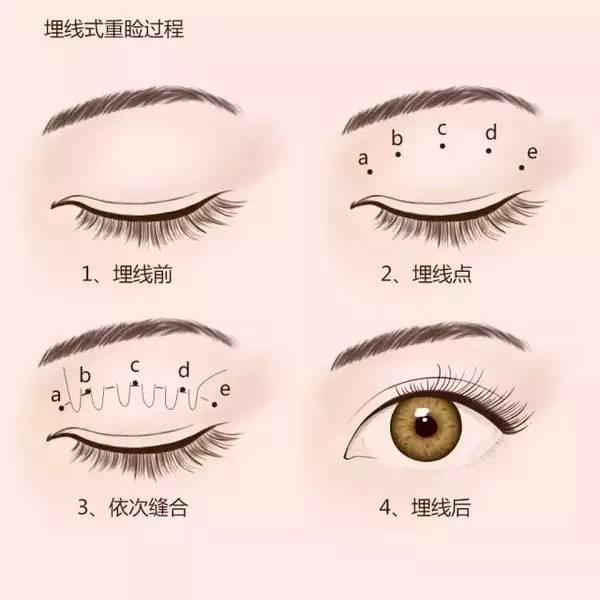 它是通过缝合方式,直接把缝线或高分子缝合线埋藏于皮肤及睑板之间,使上睑皮肤同睑板发生粘连,形成重睑。