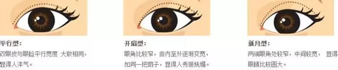 而欧式大平行、新月形、小扇形等都是描述双眼皮形状的名称,而切开、埋线等是具体手术方法名称。