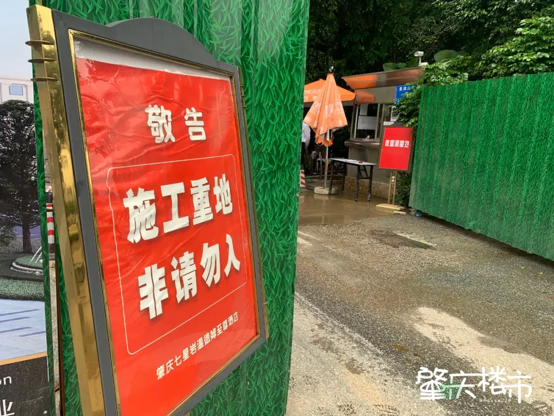 楼市君到现场踩点,酒店已被围蔽,工地外张贴有肇庆七星岩温德姆至尊酒店的敬告:“施工重地,非请勿入”。