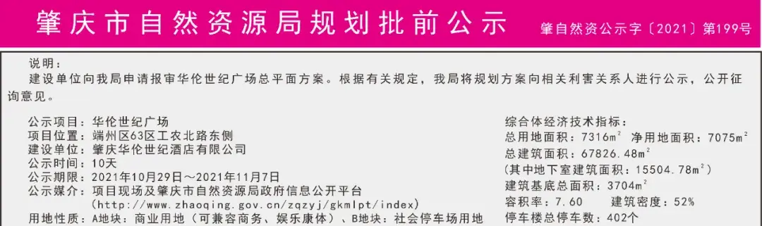 10月29日,肇庆市自然资源局发布华伦世纪广场批前公示。这意味着,肇庆华伦世纪项目继续提速落实。