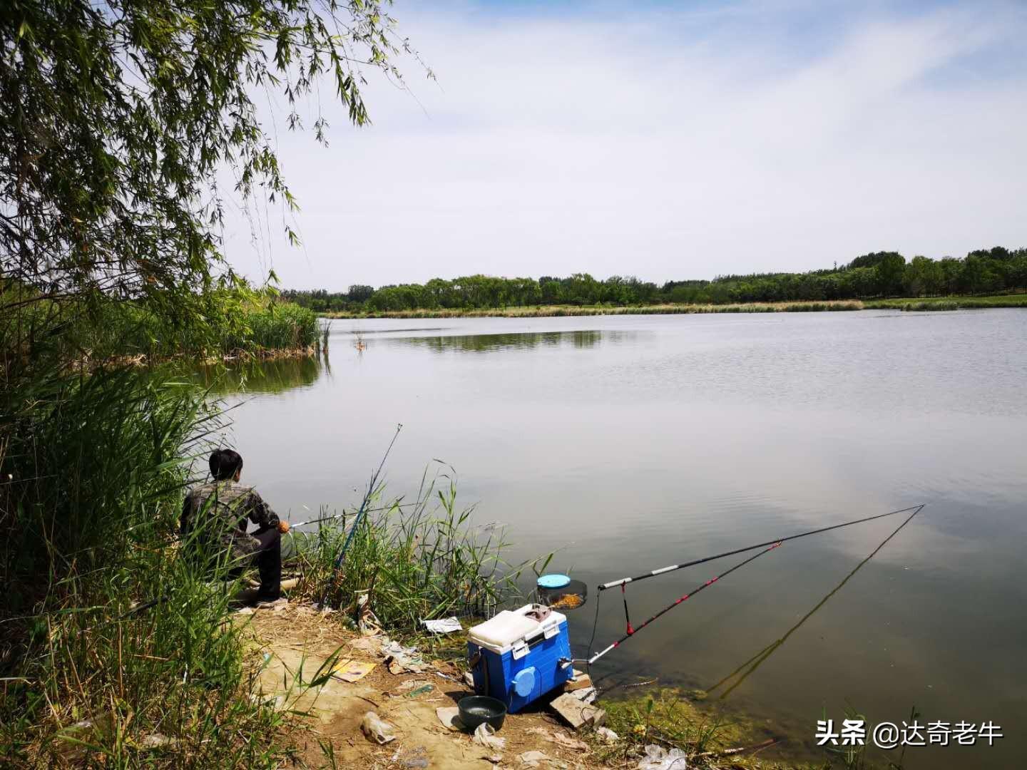 5月22号和朋友去了一次唐山南湖木屋别墅塌陷坑,简单介绍一下:唐山有不少采煤塌陷坑,时间长了就有了什么南湖、北湖......,木屋别墅附近这个塌陷坑面积大概60-70亩,很不规则,深浅不一,据说最深的地方几十米。周围都是柳树和芦苇,2000年左右有人养过鱼,后来建了木屋别墅和高尔夫球场。里面的鱼也没清干净,大鱼主要是草鱼,10斤-60斤左右,但是密度很低,现在有很多放生的锦鲤,个体半两-1斤半,几乎北方常见的淡水鱼都有。每年附近村庄的人都托关系进去玩,每周晚上都有电鱼的、下网的,大鱼已经很少了。