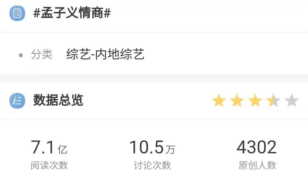 但是反观孟子义,这么多年过去了,依然没有担任女主的爆款剧,从《一年级·毕业季》时期面对袁咏仪,到现在《五十公里桃花坞》中面对桃花坞的伙伴们,孟子义被网友们吐槽最多的还是她的情商低,甚至最近还因此上了热搜,引起了十万多的讨论量。